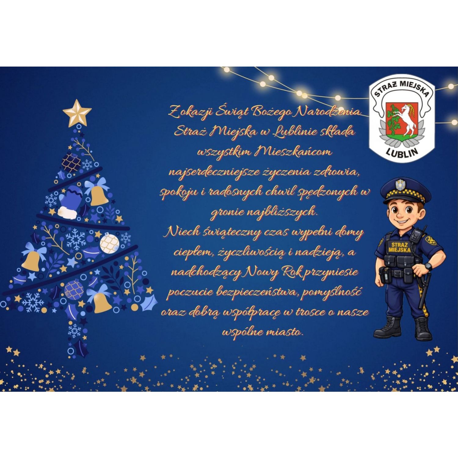 Najserdeczniejsze świąteczne życzenia dla mieszkańców oraz mieszkanek Lublina, od funkcjonariuszy oraz pracowników administracyjnych Straży Miejskiej